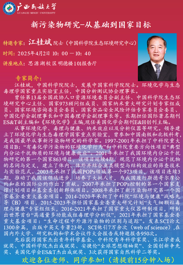 上一条:五邑大学栾天罡教授应邀来我院开展学术讲座 下一条:化学化工学院“‘开新局 谋新篇 创新绩’学术论坛月”系列活动之三