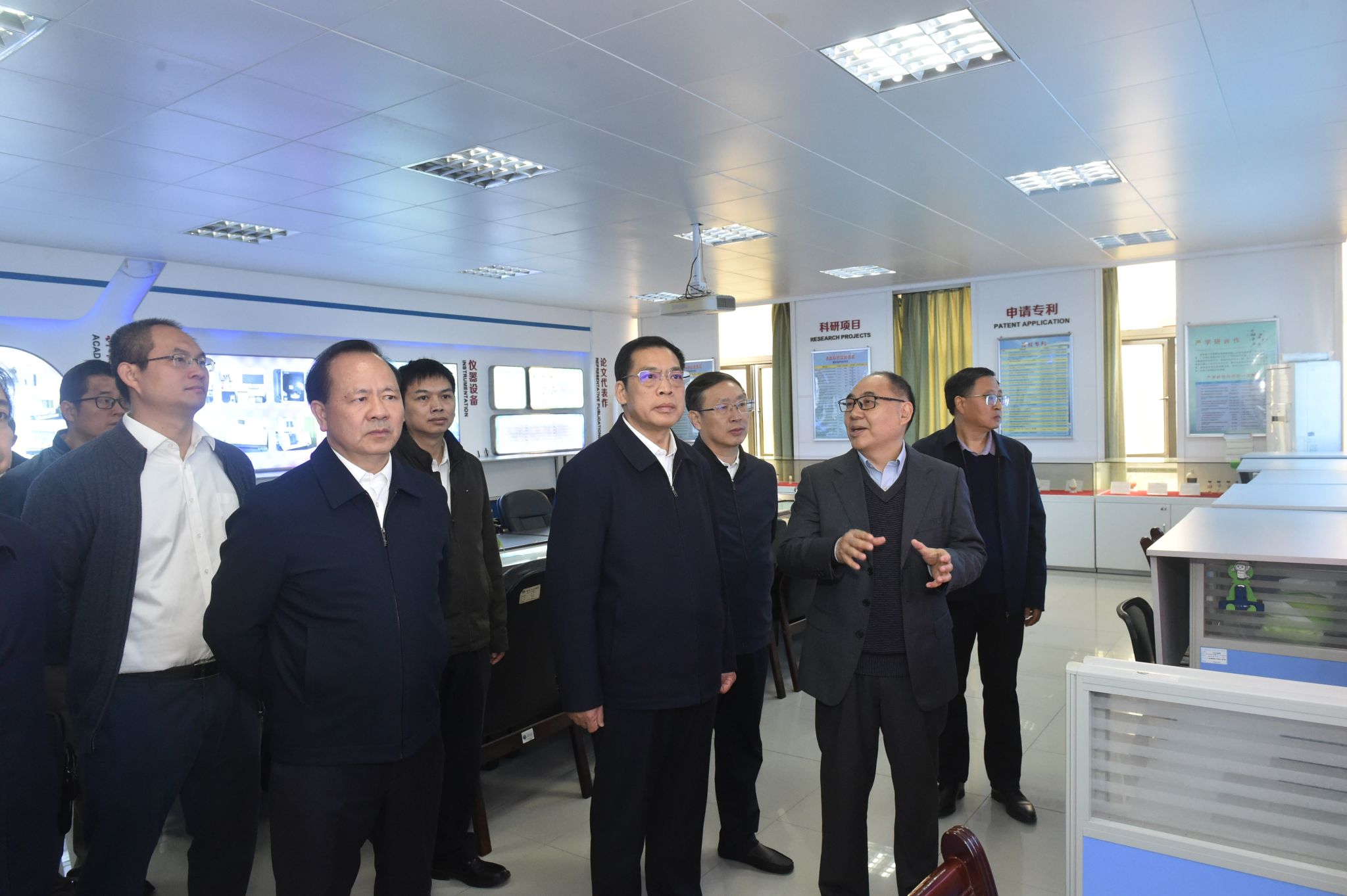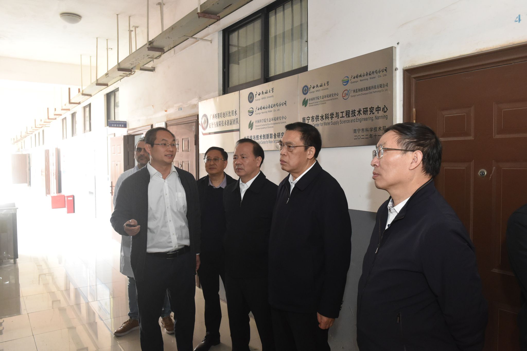 自治区副主席李常官(右二)在我校南宁市供水科学与工程技术研究中心调研
