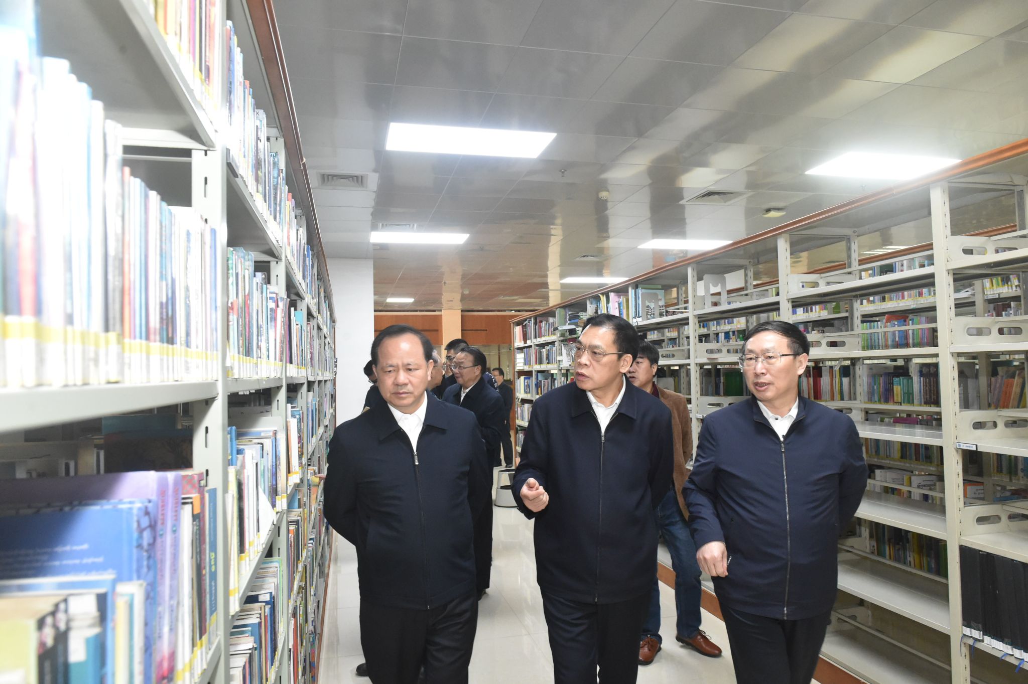 自治区副主席李常官(左二)在我校图书馆调研