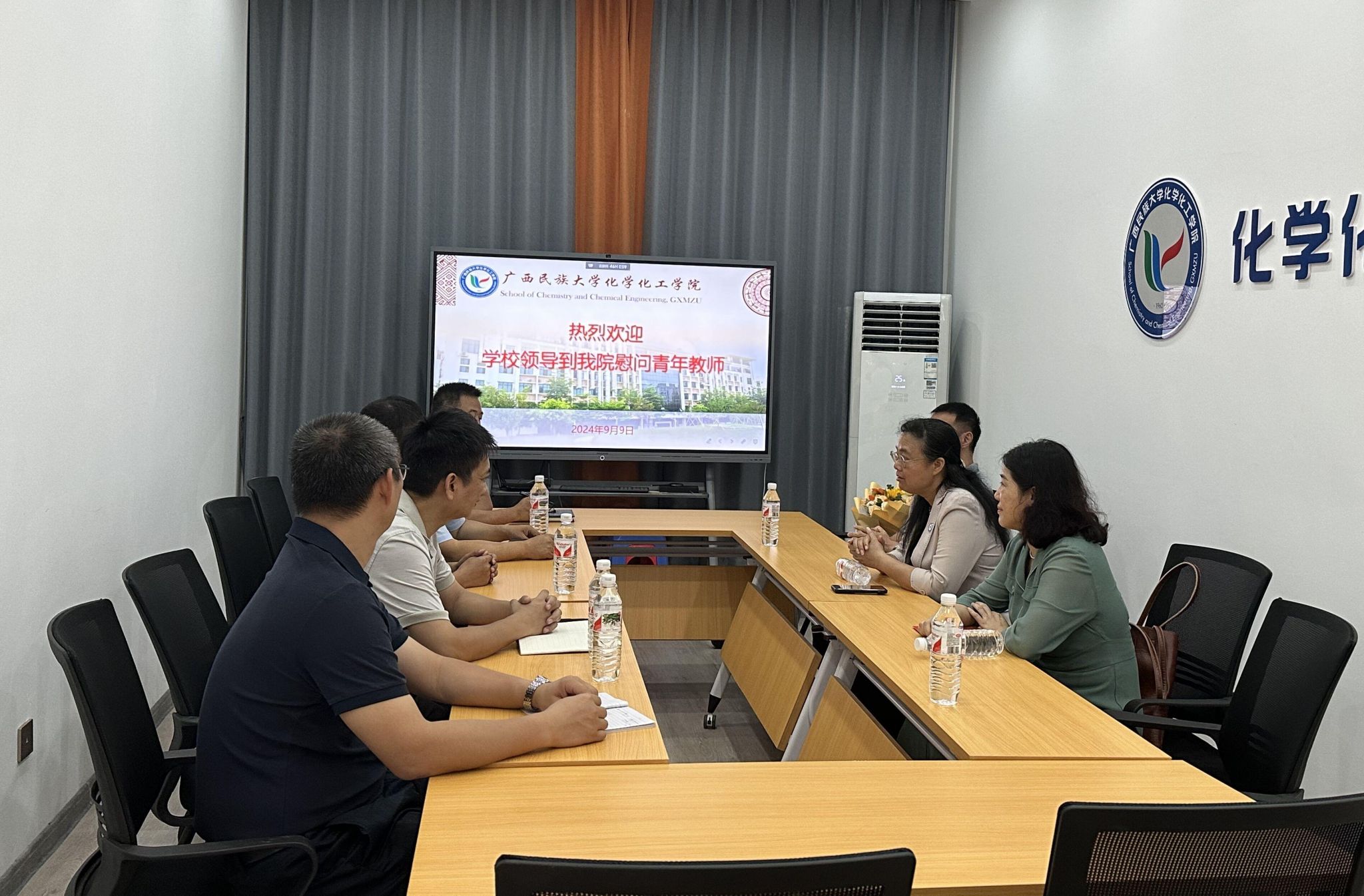 9月9日上午,m88明昇校长韦仕珍、人事处处长周丽华、科技处处长唐国吉等一行到我院慰问教师,并在化学化工学院扬帆楼112会议室开展教师慰问活动。